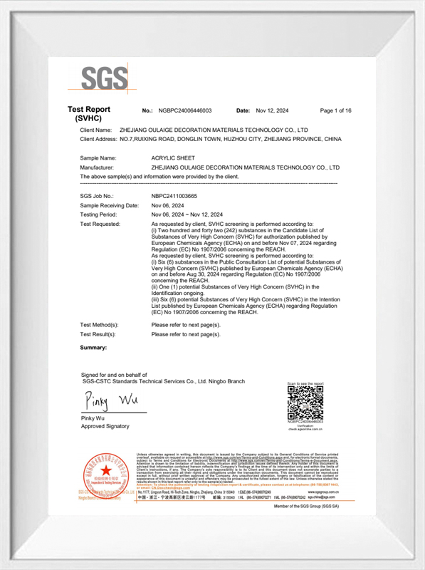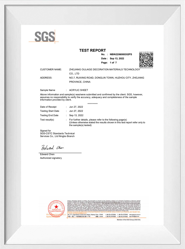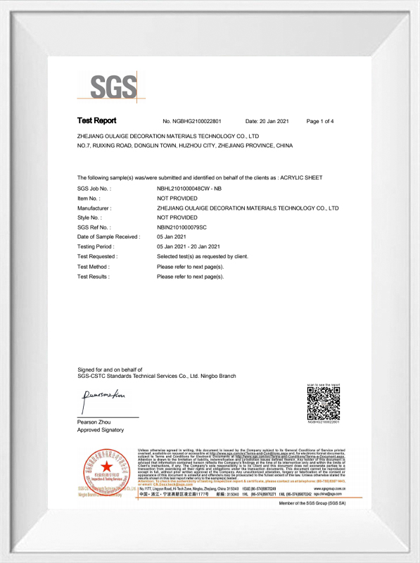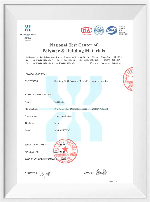 Ogni pezzo di foglio acrilico colorato trasparente Oleg è rigorosamente testato:
